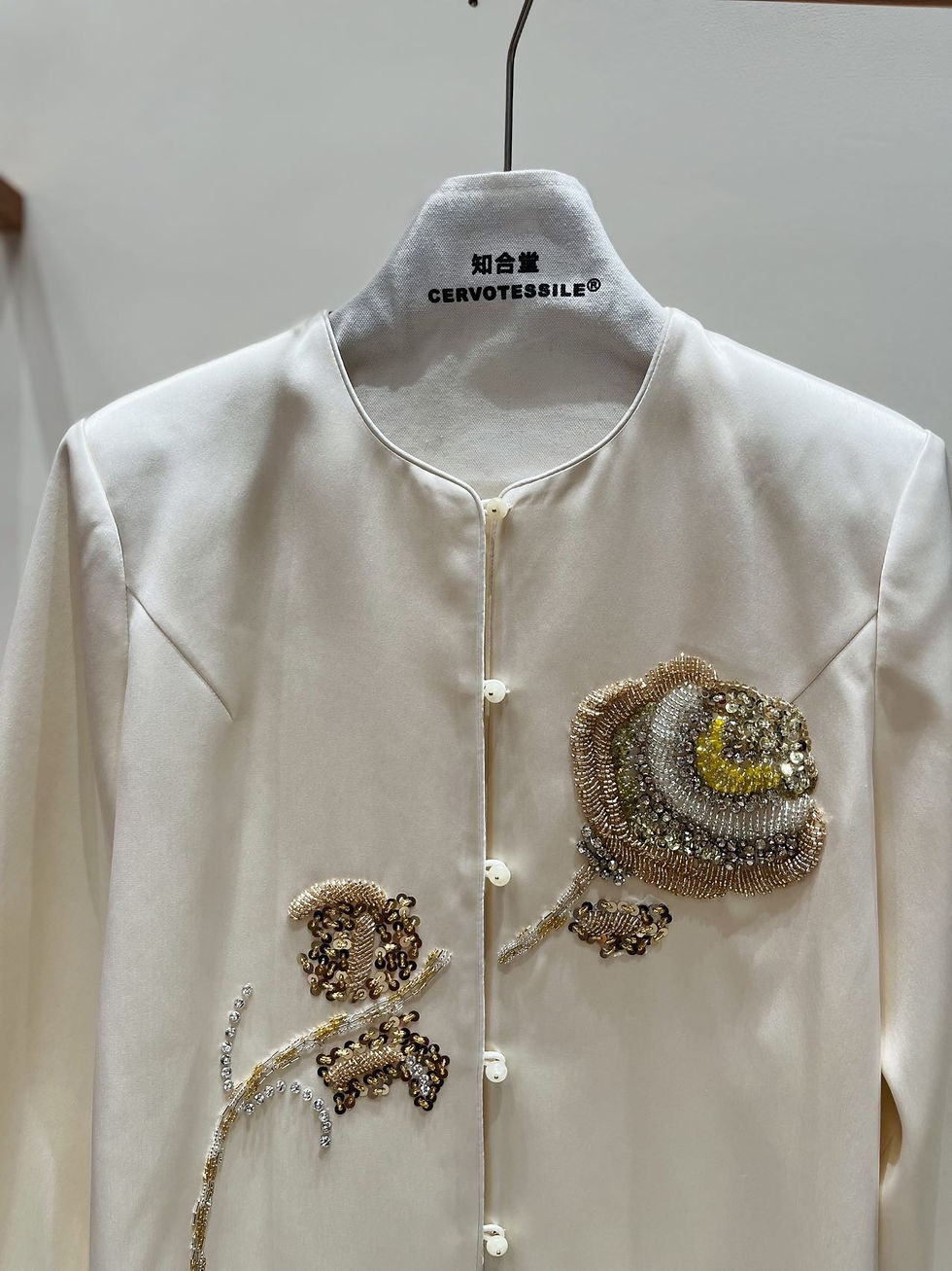 Cervotessile New Chinese Style Jacquard acetate Top (1803)