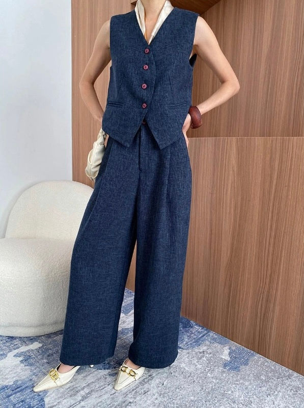V-neck suit vest wide leg pants sets